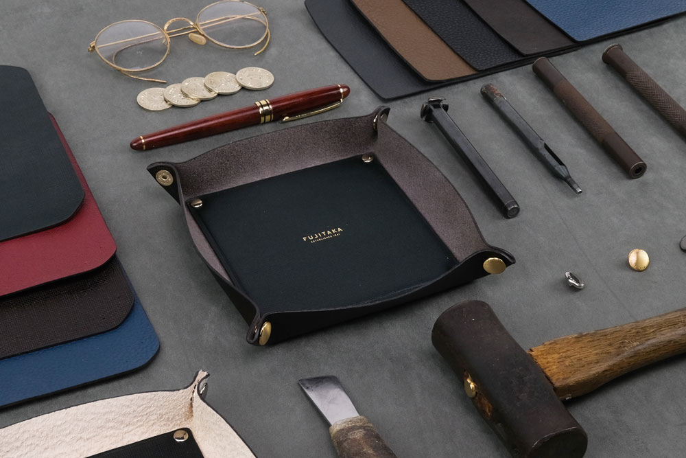 11 月19 日( 水) は1日限定でFUJITAKA の職人が来店し、サステナブルな素材を使った革小物づくりのワークショップを開催します。ワークショップでは、FUJITAKA が独自開発したオリジナルレザー「GREEN TOUCH LEATHER®」や、エコレザー基準の最高ランク「エキストラ」に認証された上質なレザーを使用し、暮らしに寄り添うレザートレイ作りを体験していただけます。